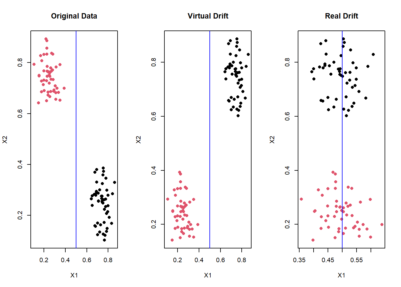 The figure below gives an example of the original data and data resulting from real and virtual drift.