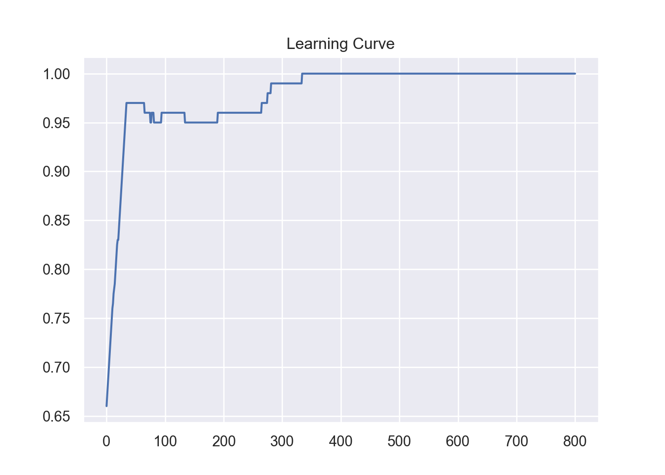 The above results indicate that Player O has learned to consistently beat the random player X. What is interesting to note is that the RL approach results in Player O beating Player X more consistently (85%) of the time than when using the Minimax approach (~ 81%).